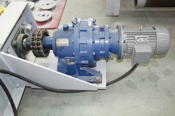 11:減速器跟滾輪連接釆用鏈條帶動可減少斷軸可能。